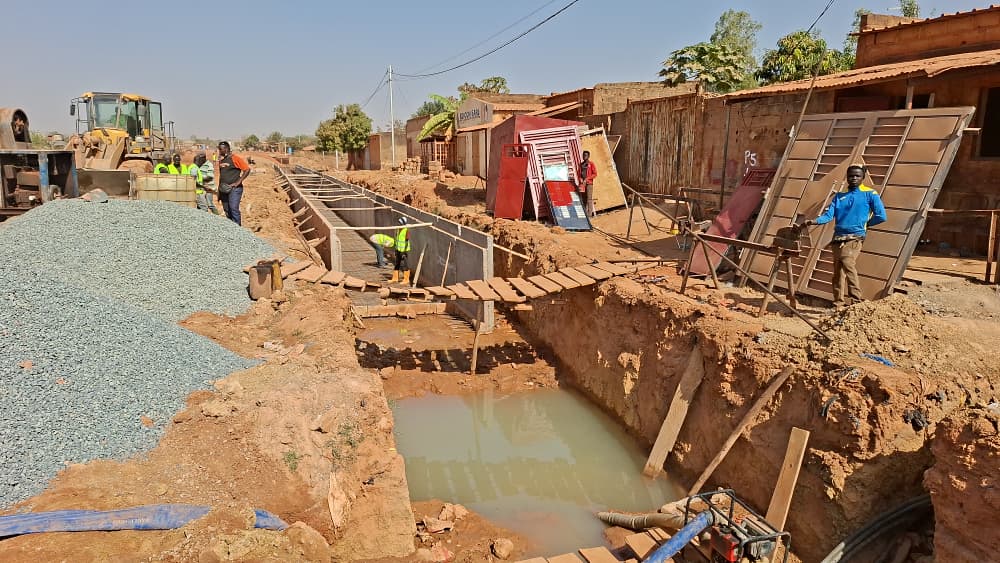 La journée a débuté à Silmiougou, situé à la périphérie nord-ouest de la capitale burkinabè dans arrondissement 8. Là, la Société Nationale d’Aménagement des Terrains Urbains (SONATUR) pilote d’importants travaux de voirie et d’assainissement. Sur ce site, le taux d’exécution global avoisine les 70 %.