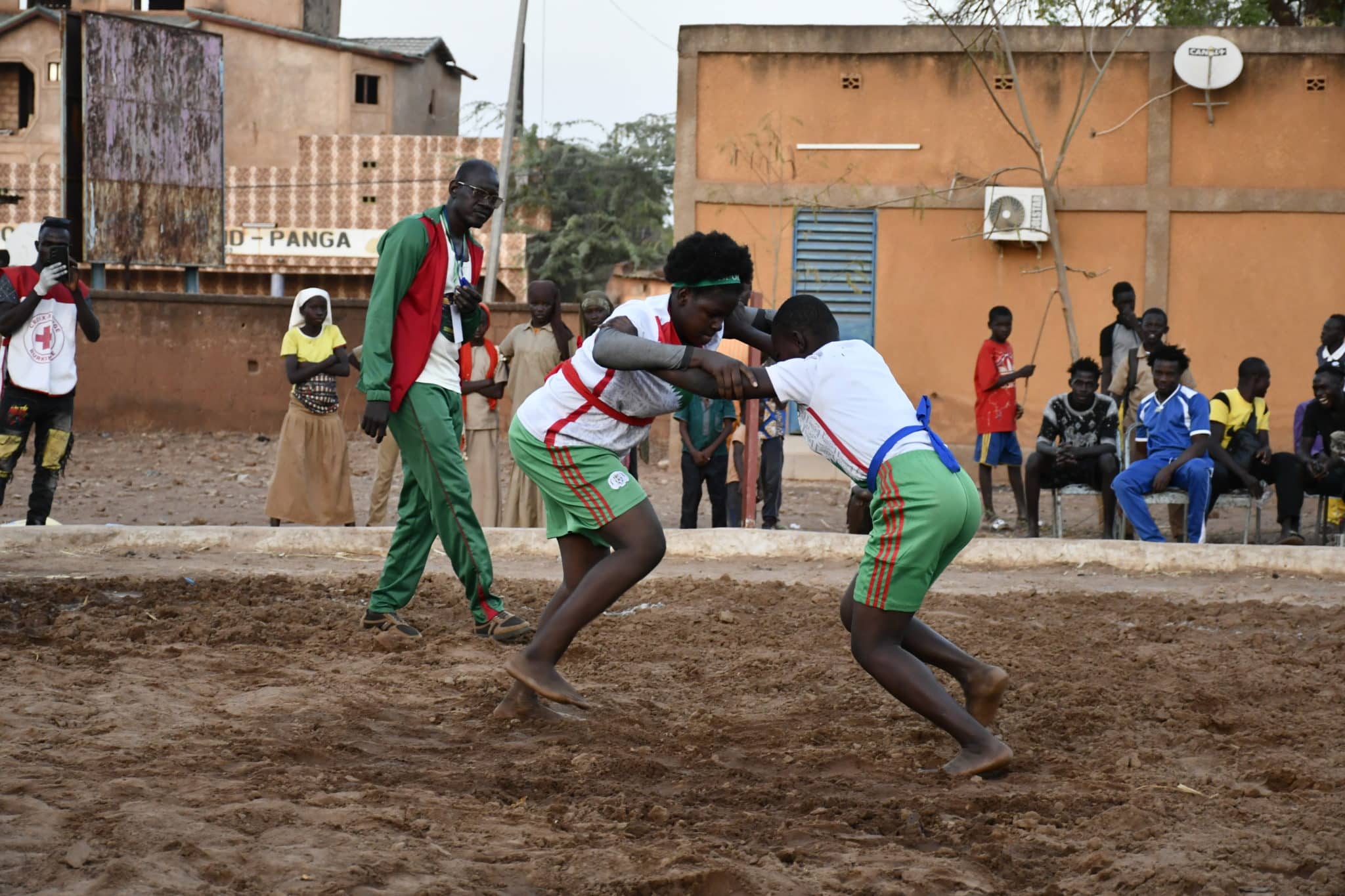 En fin de journée, le public a pu assister aux premières phases éliminatoires de la lutte traditionnelle, discipline reine de la culture San.