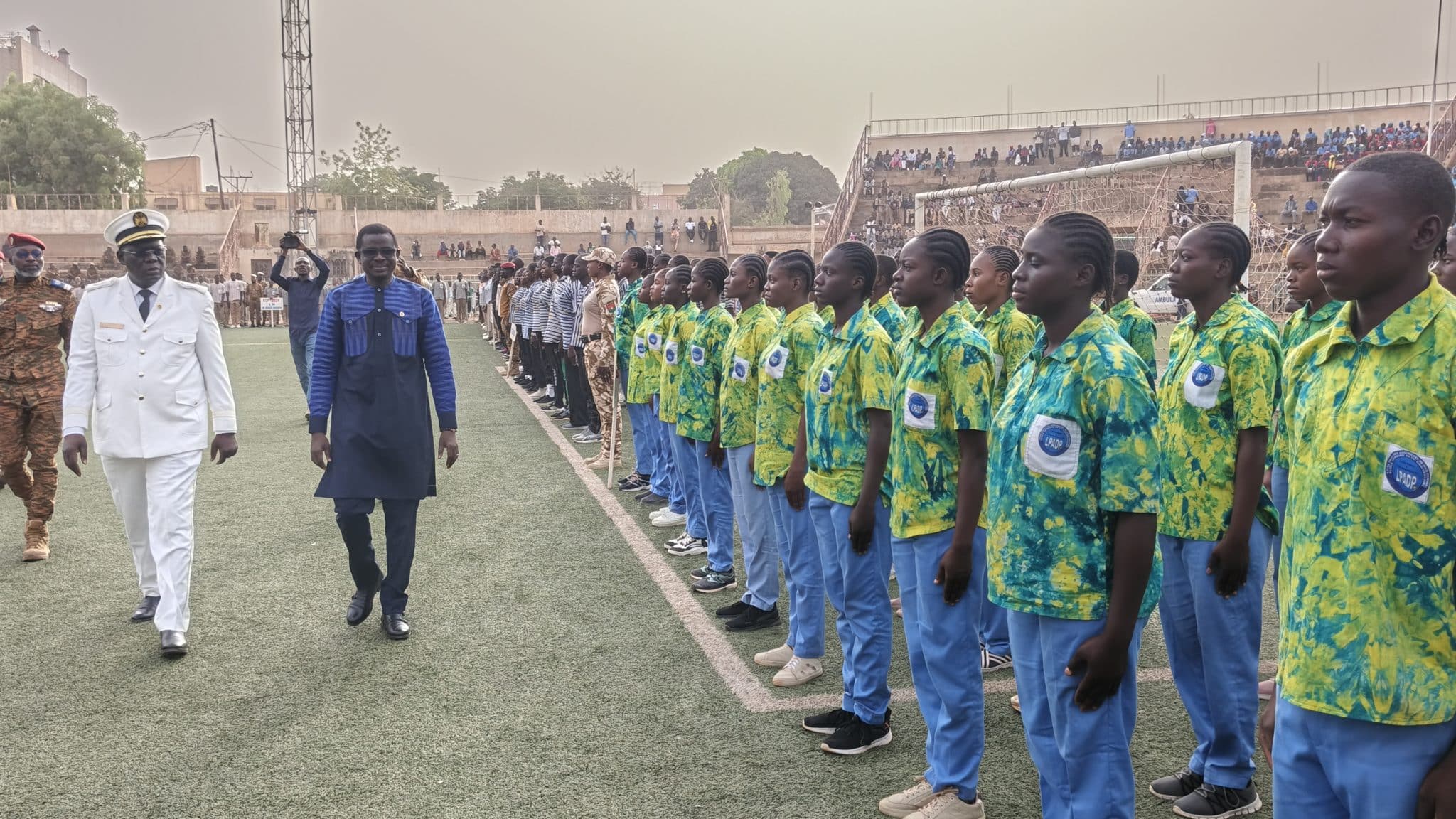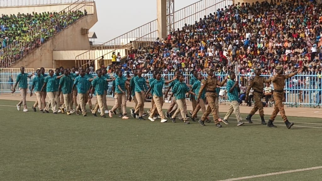 Le Pr Moumouni Zoungrana, ministre de l’Enseignement secondaire et de la Formation professionnelle et technique et le Gouverneur de la région du Kadiogo, Abdoulaye Bassinga, ont clôturé la première phase du processus de formation au civisme et à l’amour de la patrie des élèves des classes intermédiaires des établissements d’enseignement publics et privés de la région du Kadiogo. C’était au stade Issoufou Joseph Conombo de Ouagadougou, ce samedi 28 février 2026.