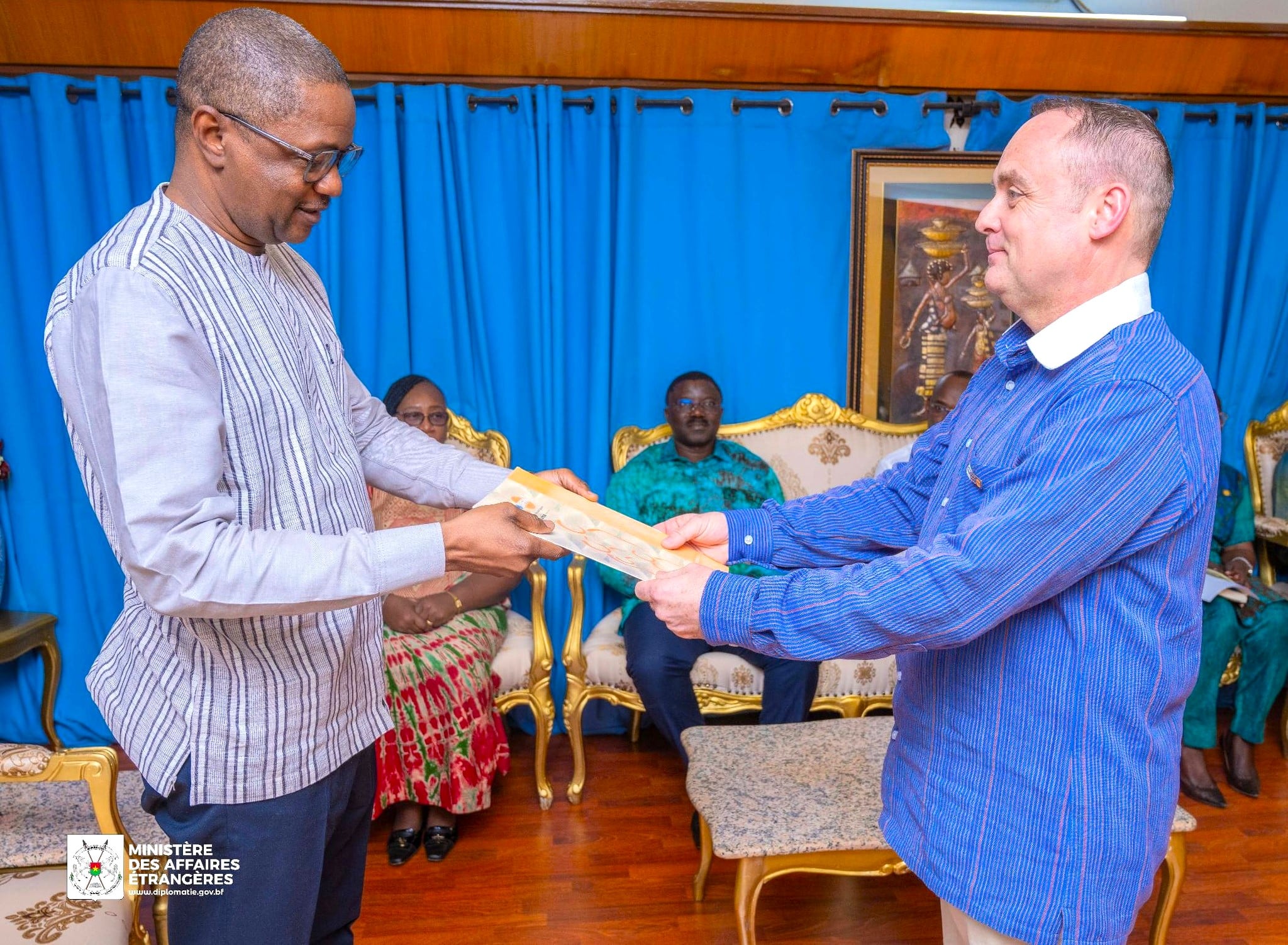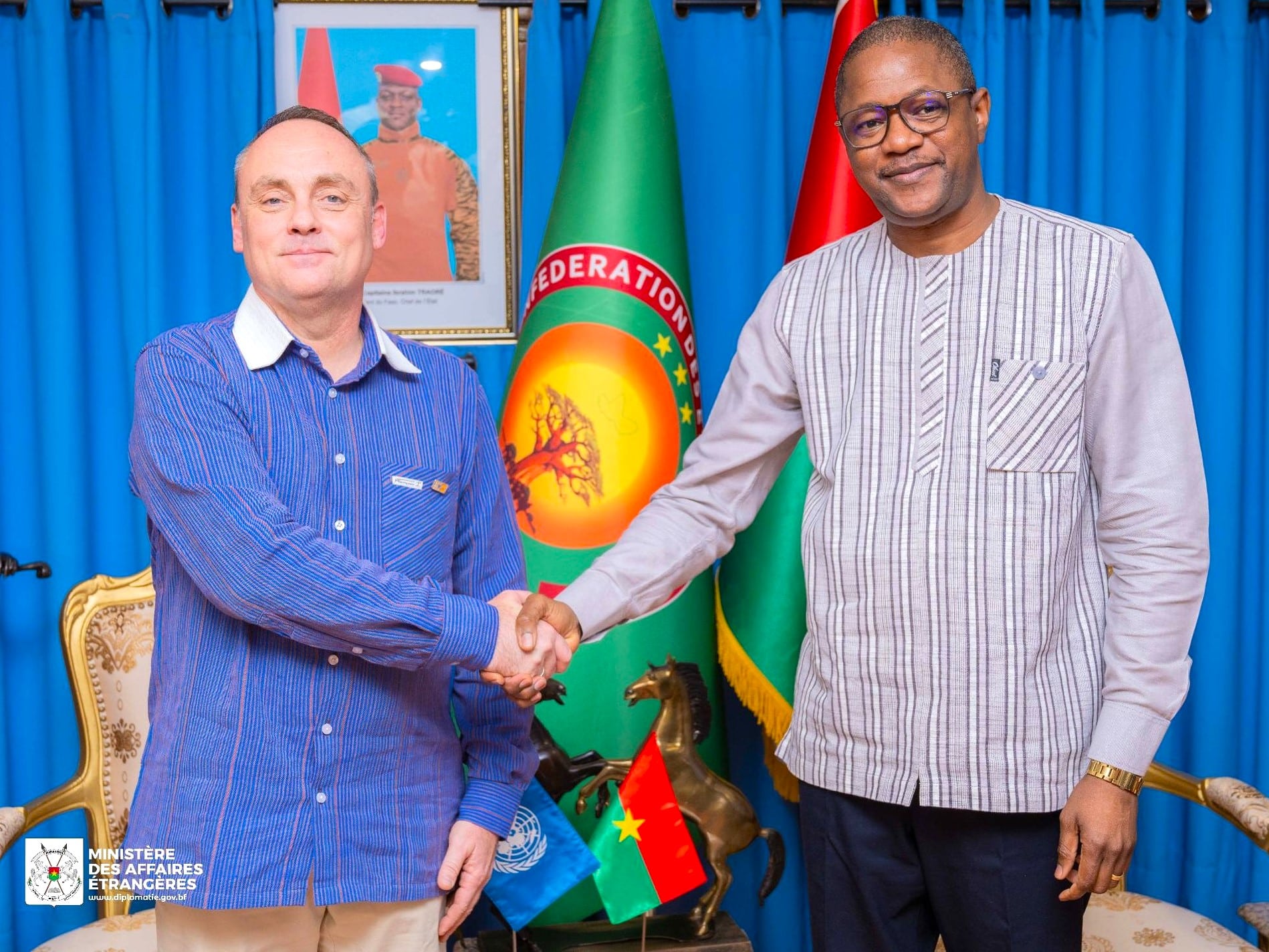 Le ministre des Affaires étrangères, Karamoko Jean Marie Traoré, accompagné du ministre délégué Bêbgnasgnan Stella Eldine Kabré/Kaboré, a reçu, ce mercredi 4 mars 2026, le nouveau Représentant résident de l’UNFPA au Burkina Faso.