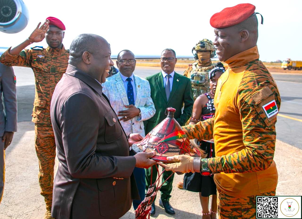 Le Capitaine Ibrahim TRAORÉ, Président du Faso, Président de la Confédération des États du Sahel (AES), a accueilli ce lundi 20 avril 2026 matin à l’Aéroport international de Ouagadougou, le Président en exercice de l’Union Africaine (UA), le Général Évariste NDAYISHIMIYE, Président de la République du Burundi.