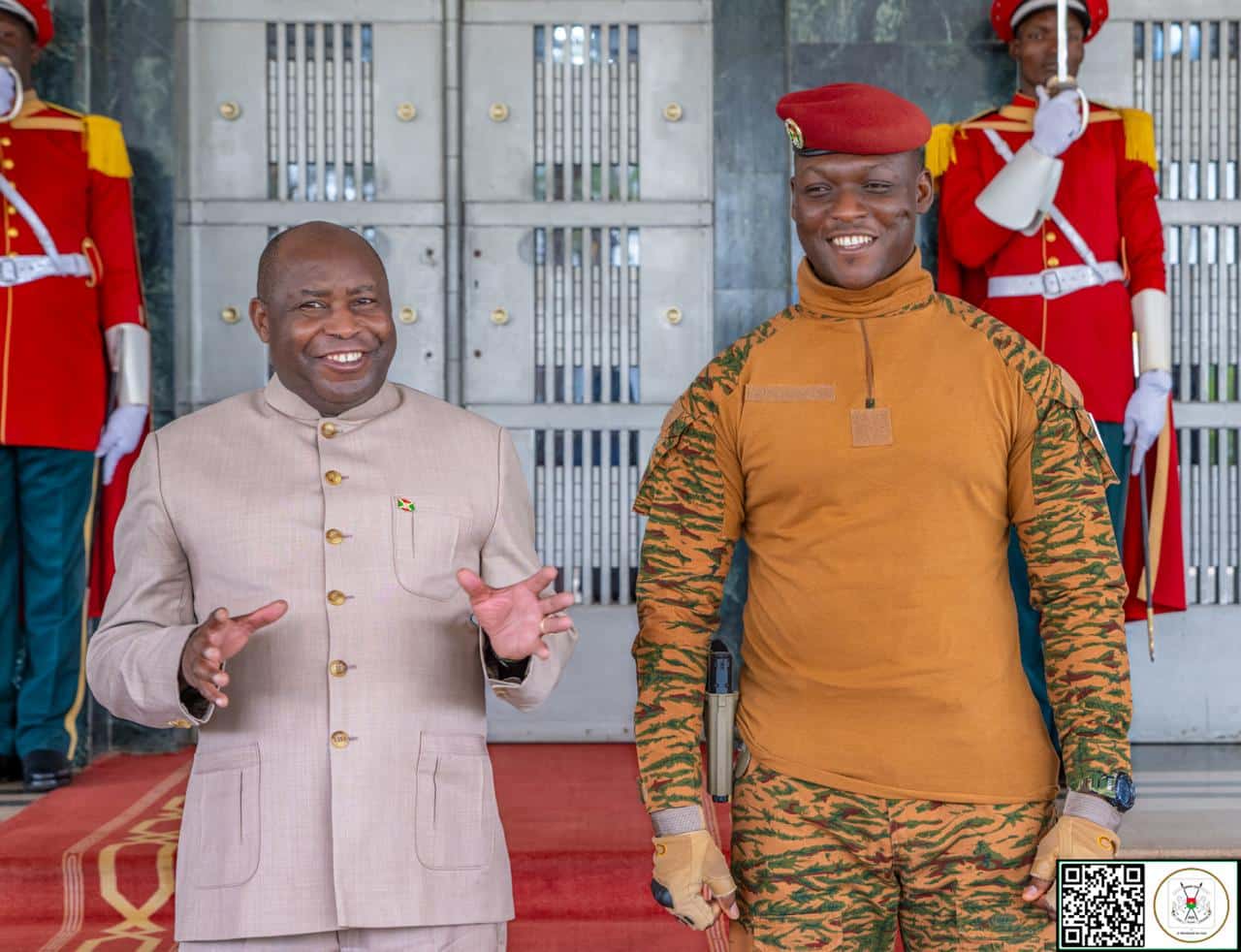 Le Président du Faso, le capitaine Ibrahim Traoré, a reçu ce lundi 20 avril 2026 au Palais de Koulouba le Président en exercice de l’Union africaine, le Général Évariste Ndayishimiye, également chef de l’État burundais.