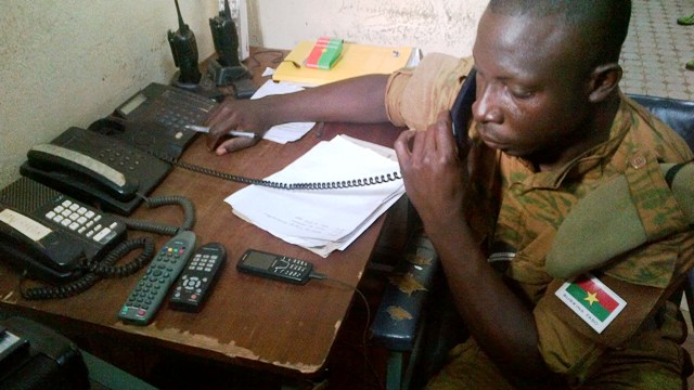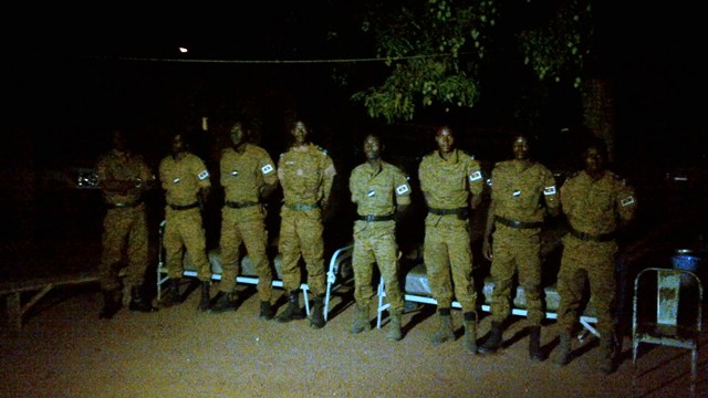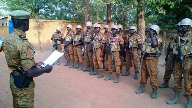 18h. Camp Paspanga. GMO. Le sous-lieutenant Herman N’Do, commandant du 33e escadron de la gendarmerie nationale donne ses derniers ordres à ses 30 éléments équipés de casque, de gilet pare-balle et de kalachnikov : effectuer des patrouilles sur les axes Ouaga-Bobo (jusqu’à Sabou), Ouaga-Léo (jusqu’à Ipelsé) et Ouaga-Ouahigouya (jusqu’à Arbollé), recueillir des informations sur toute activité criminelle, faire cesser tout acte criminel et interpeller ou neutraliser tout individu suspect.