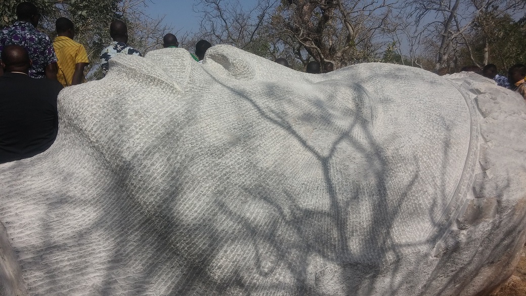 Blandine Ouédraogo, l’une des femmes ayant pris part au symposium, posant à côté de son « aigle royal » en pierre, a fait part des conditions et du processus du travail. « Quand on arrive sur le site, chacun choisit sa pierre en fonction de son idée. Au début, je ne voulais pas faire l’aigle mais quand j’ai vu cette pierre, ça m’a inspirée », dit-elle.