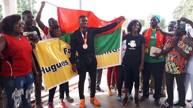 « En allant à un championnat, l’objectif c’est de ramener clairement une médaille. Mais ce n’est pas toujours évident. Monter sur la boite, c’est un grand plaisir pour moi d’avoir marqué l’histoire du sport burkinabè une première fois, je sais qu’il y aura de belles choses encore. On n’est qu’au prélude de l’histoire du sport burkinabè. Je pense qu’il y a de très belles pages qui vont s’écrire prochainement ». Ce sont les premières déclarations de Hugues Fabrice Zango à son arrivée à l’aéroport international de Ouagadougou. Accueilli par le directeur de cabinet du ministère des sports et des loisirs (MSL) Hugues Fabrice Zango s’est, en effet, montré optimiste pour son propre avenir et celui du sport burkinabè.