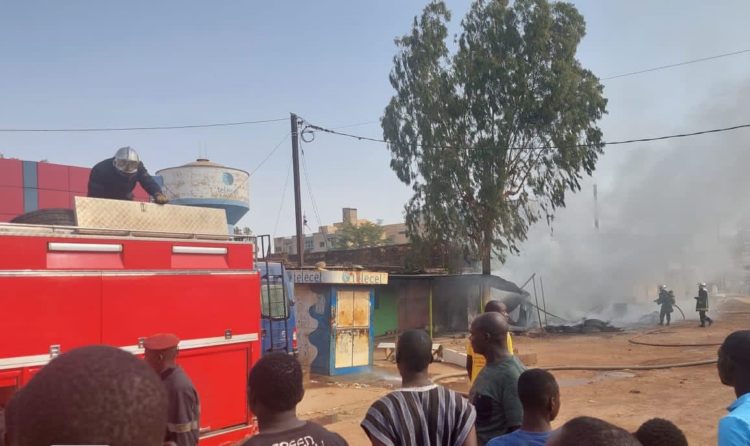 Ce dimanche 5 décembre 2021, un kiosque et un lieu de vente de pneus sont partis en fumée dans le quartier Koulouba, non loin du château de Telecel Faso.